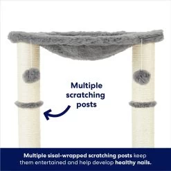 - Scratching posts are wrapped in natural sisal rope to offer just the right amount of texture and resistance to cat claws.