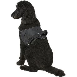 - Features 100% polyester material, easy-click buckles to prevent slipping out, an added handle for extra control and two mini D-rings on top for ID tags or poop bag dispensers.