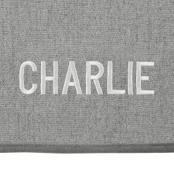 - Choose from light grey or dark grey thread for embroidery and choice of flair script or block caps font.