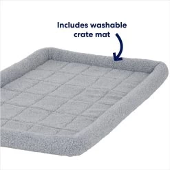 - From Frisco by Chewy. Dog crate and mat kit includes portable crate, comfy crate mat, removable base pan, and features a fold-and-carry design with adjustable handles, creating a safe and comfortable place for your pup.