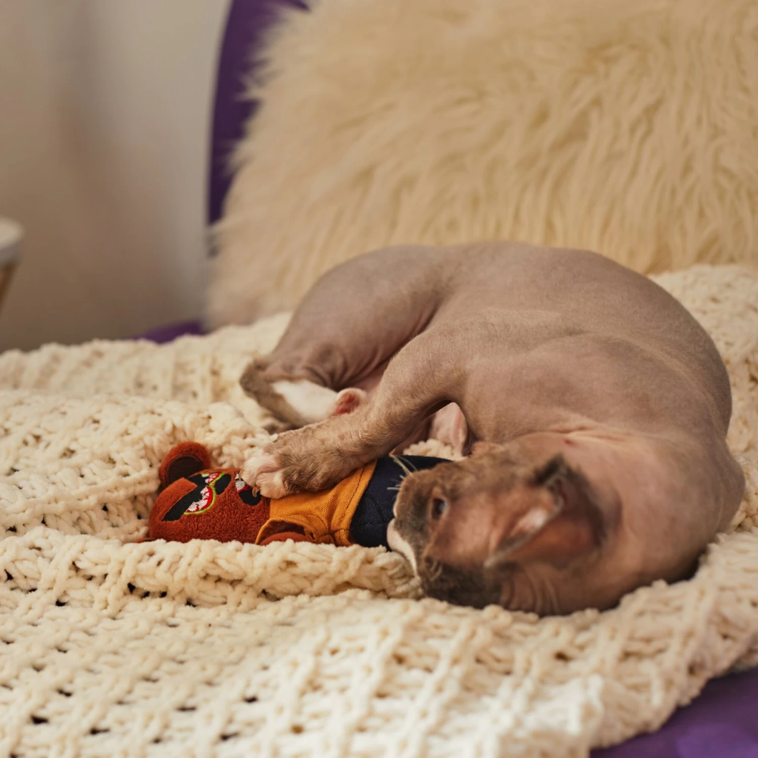 - Plush, kicker-style design, perfect for cats to wrestle and bunny kick.