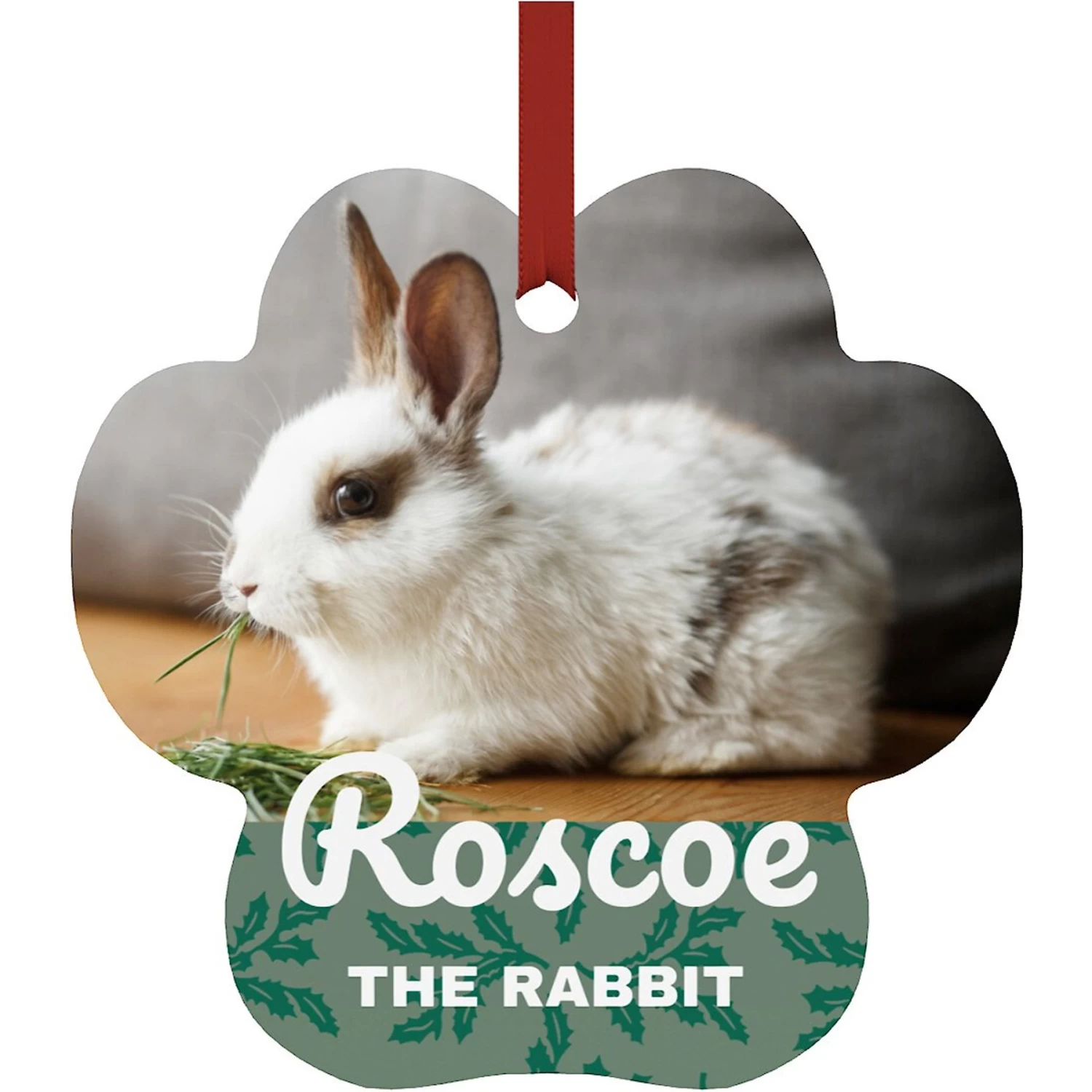 Frisco Holly Leaves Paw Shape Metal Personalized Dog & Cat Holiday Ornament