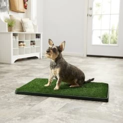 - From Frisco by Chewy. This artificial turf is designed to encourage dogs to use it as a prime potty spot, so it’s perfect for inside the house or an outdoor patio.