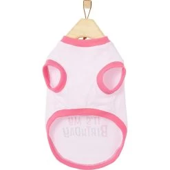 - Pink “It’s My Birthday” print makes the perfect outfit for your pet’s special day.