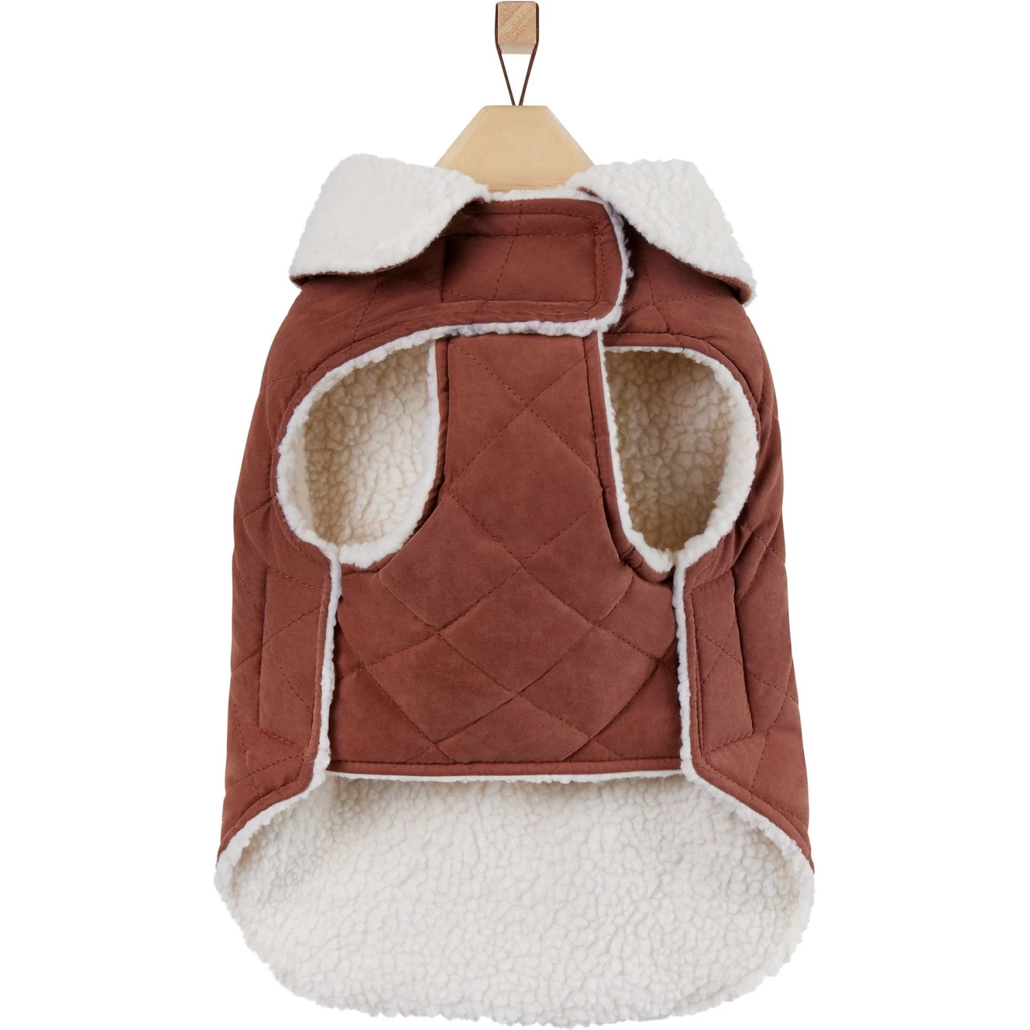 - From Frisco by Chewy. Your furry friend’s style just got a bit bolder with this fleece-lined quilted coat.