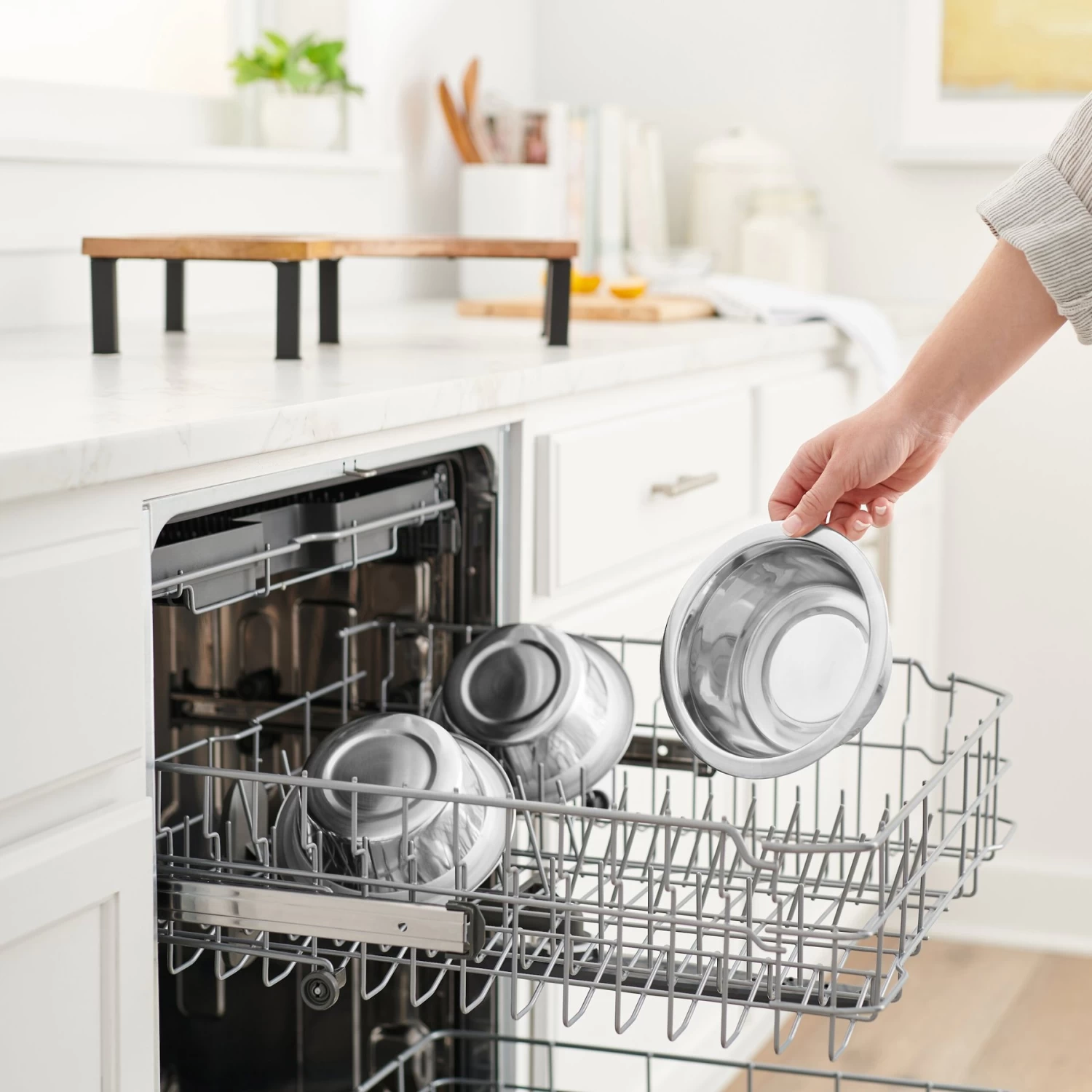 - Care instructions: Removable stainless-steel bowls are hand washable and dishwasher safe.