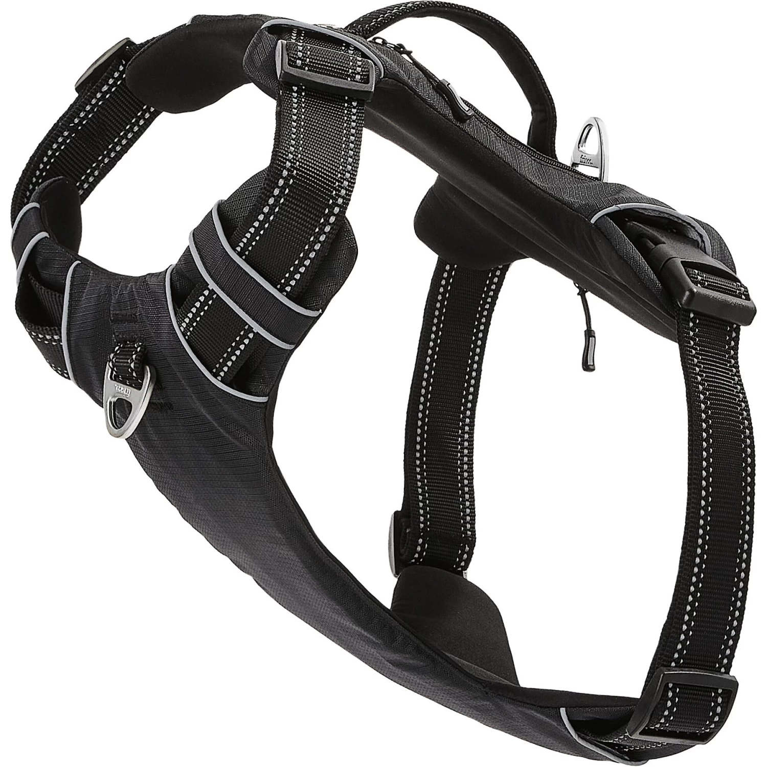 - D-rings on the chest and back allow you to attach a leash wherever fits your dog’s walking style the best.