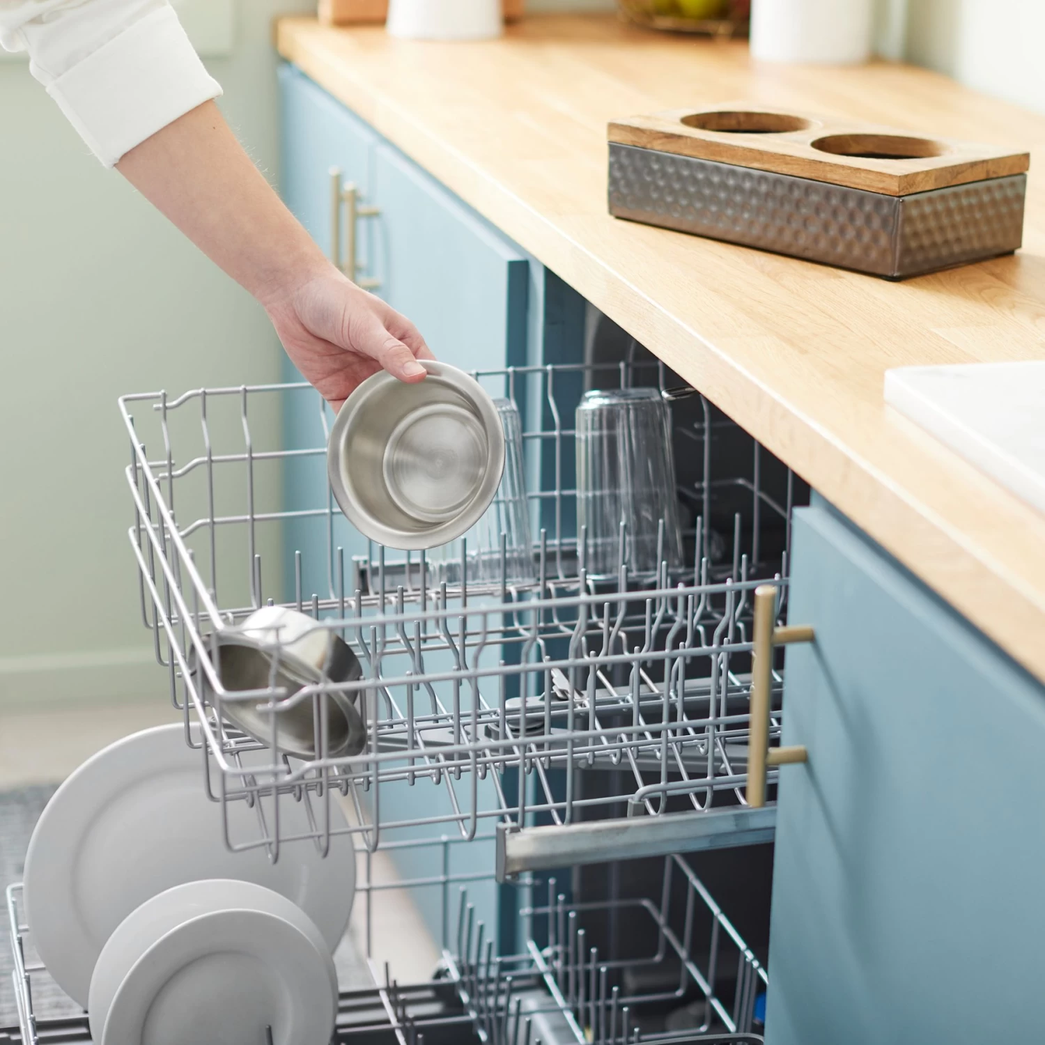 - Removeable stainless-steel bowls are dishwasher safe, making cleanup even easier.