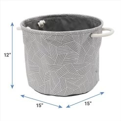 Frisco Round Collapsible Pet Toy Storage Bin, Gray Basket Weave