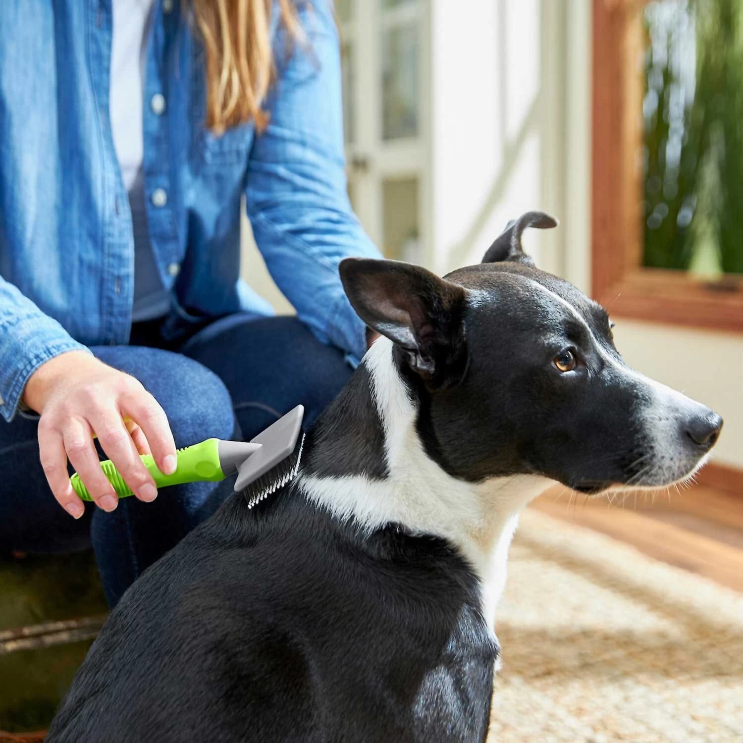- From Frisco by Chewy. The wide, stainless-steel blade of this deshedding brush allows you to easily keep up with your dog or cat’s coat.
