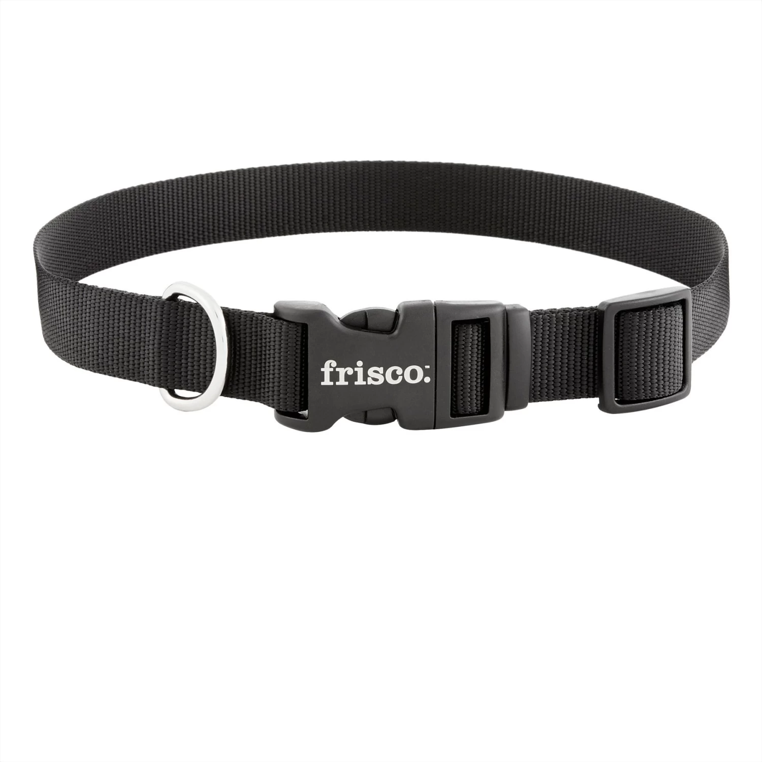 Frisco Solid Nylon Dog Collar, Black — Remember to measure your pet for the paw-fect fit. The Frisco Solid Nylon Dog Collar is a classic yet stylish collar that comes in a variety of colors and sizes so you can find just the right one for your dog. Designed for everyday wear, this collar prepares your pup for adventures outdoors and provides comfort and security during your daily walks.