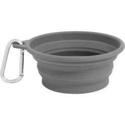 Frisco Silicone Collapsible Travel Bowl with Carabiner, Gray, 1.5 Cups — Feed your pet meals on the go with the Frisco Silicone Collapsible Travel Bowl. These silicone bowls fold flat so you can easily store them in your bag or car when you’re off on great adventures with your fur friend.